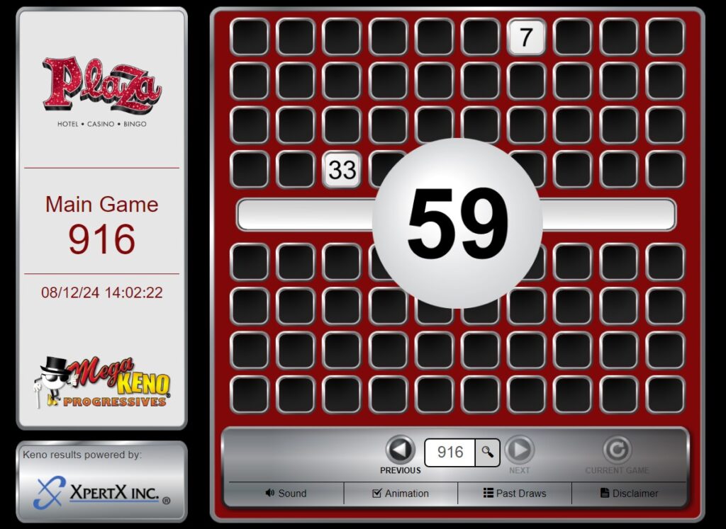 The Plaza has a live Keno lounge on the casino floor where players can enjoy the thrill of the game with draws happening every 5-8 minutes, daily from 11 a.m. to 8:45 p.m. The Plaza also has multiple Keno